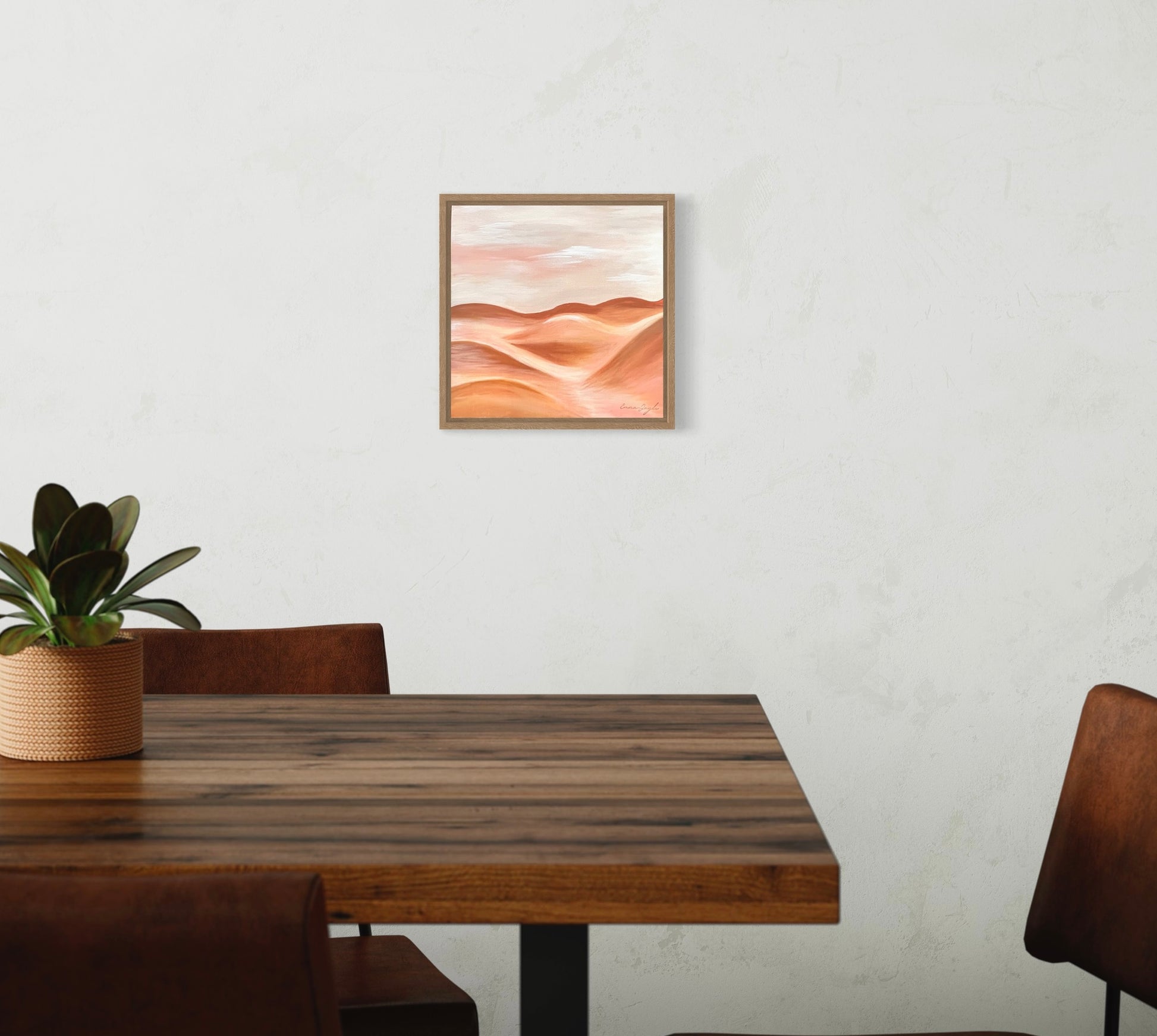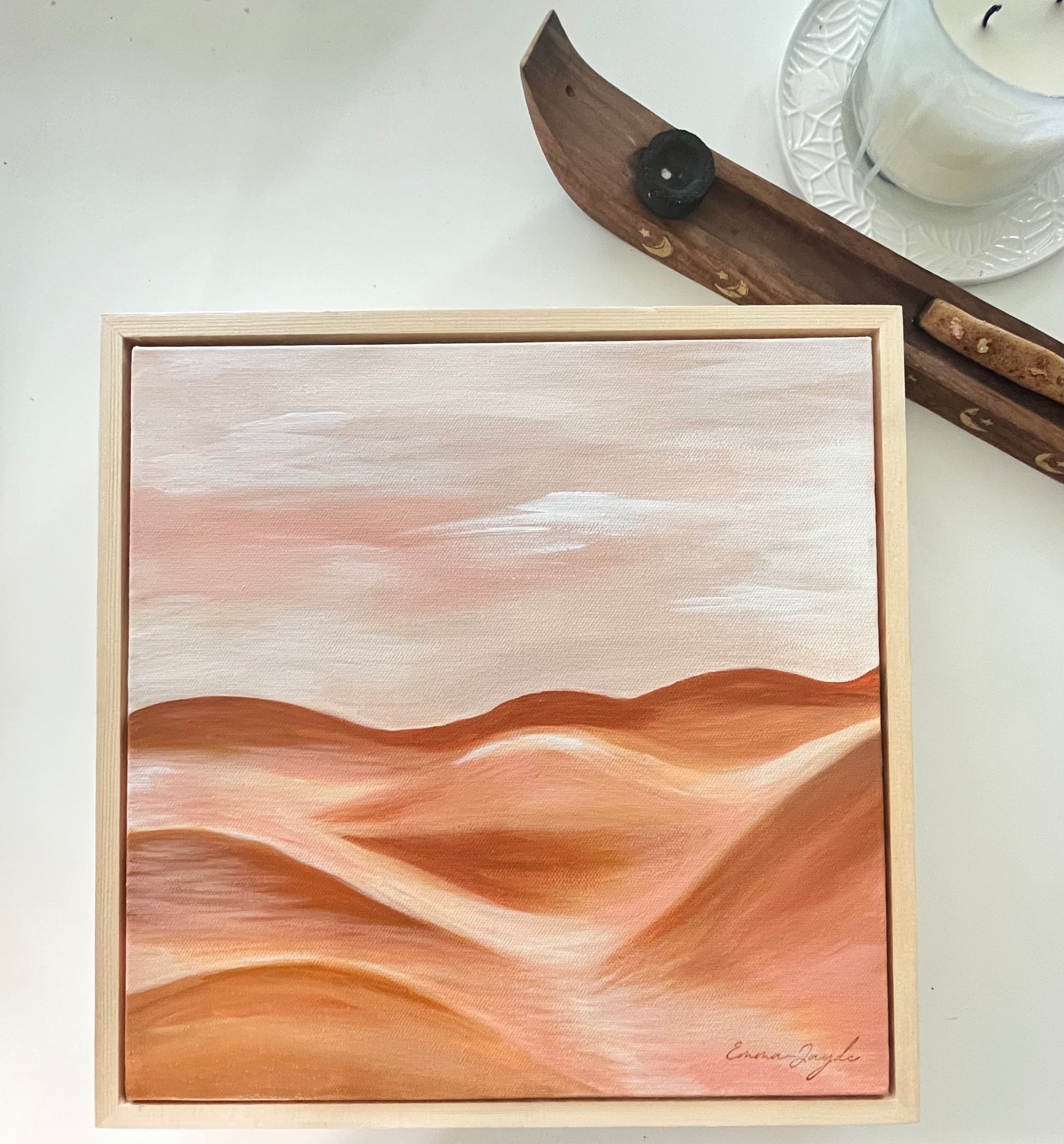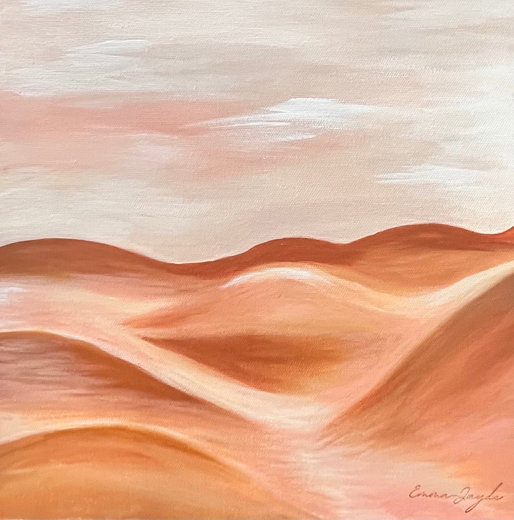 As we journey on this land there are few places that reach right into the centre of us and remind us why we are here. Lake Mungo is that place for me. The journey place of my Ancestors, the Mutti Mutti people (as well as other language groups). This place was a stomping ground for my bloodline, and I feel them so powerfully still dancing there. And so I need to express that through painting. Through the colours that dance within me from my experiences there. This painting is my abstract interpretation of the Mungo sand dunes.