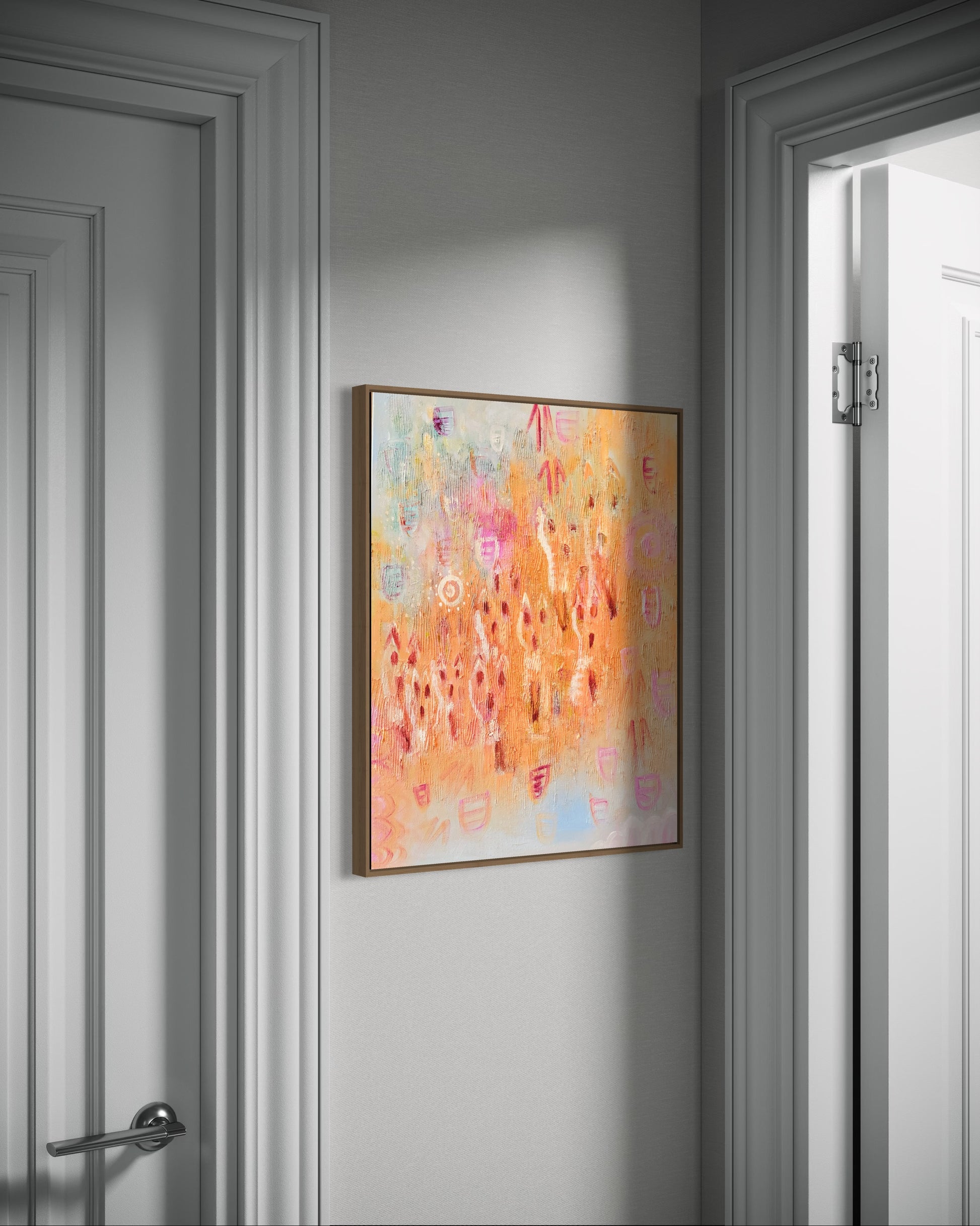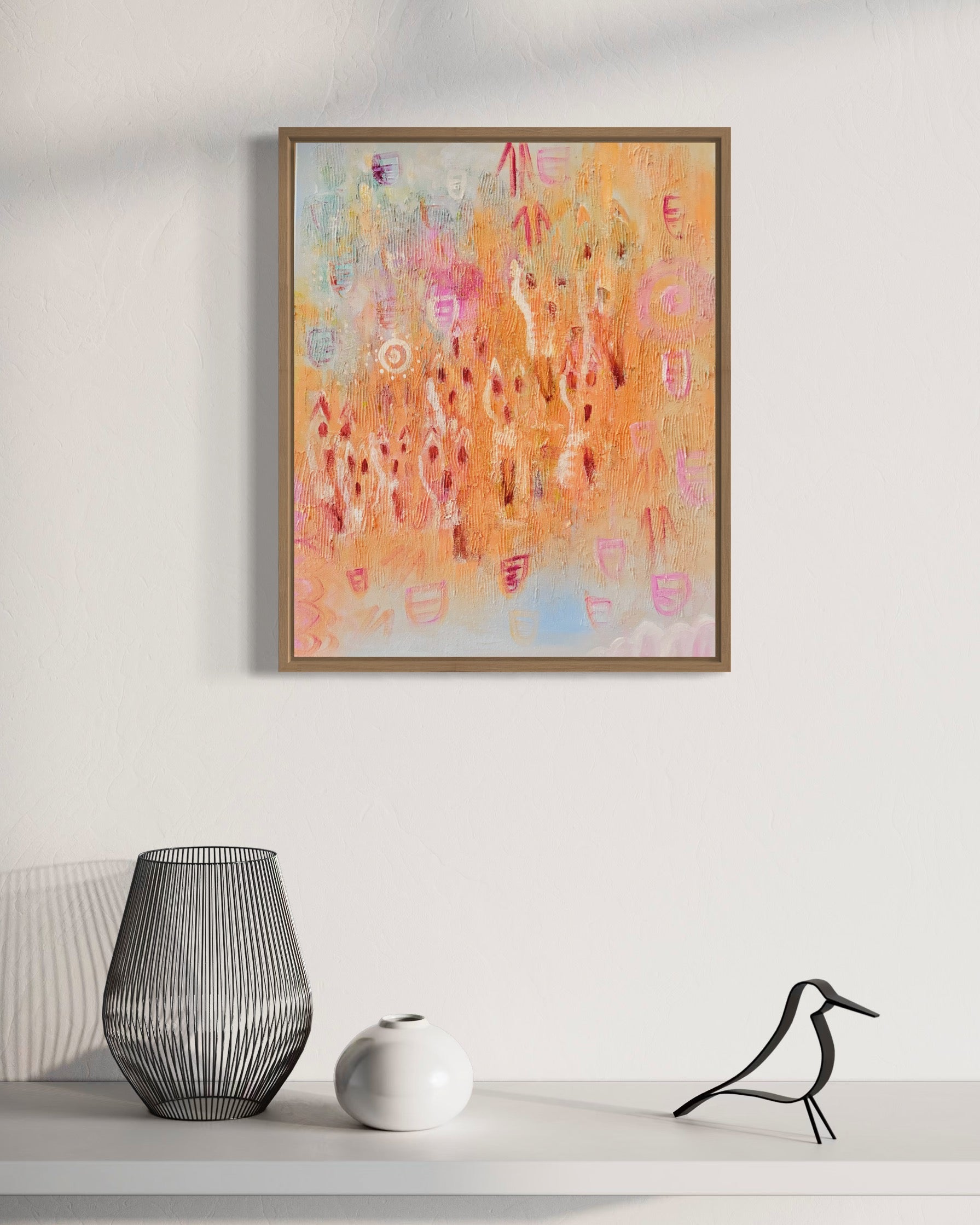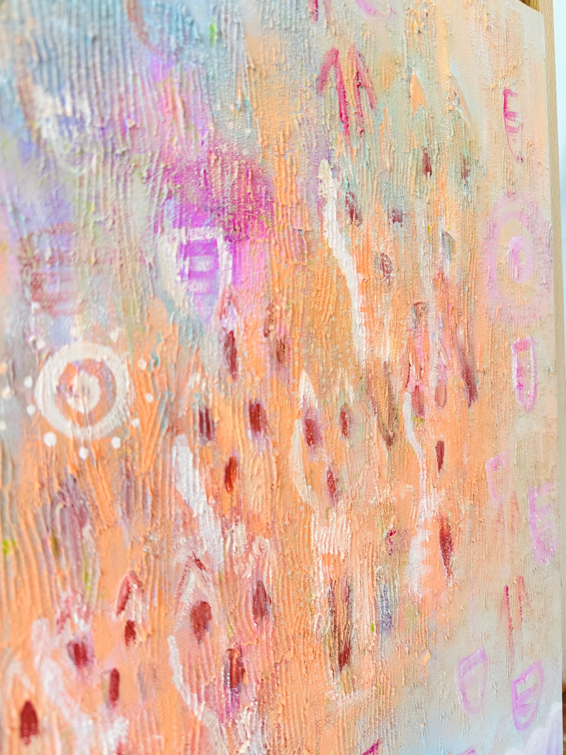 Her mob follows—elders, mothers, joeys—painting their own rhythms beside hers. Together, they map a story of kinship, of shared breath and belonging.